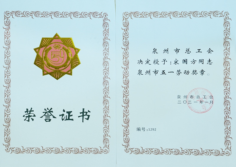 泉州工匠榮譽證書